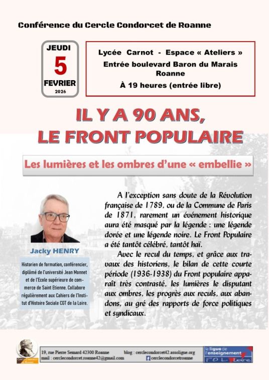 Conférence Cercle Condorcet de Roanne sur "le Front Populaire" le 5 février 2026 à ROANNE